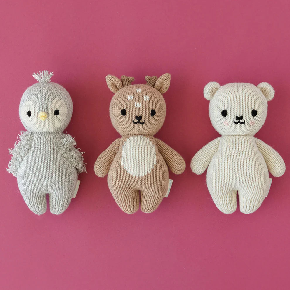 Absolutely adorable and oh so collectible! Our hand-knit baby animals are the perfect way to start or grow your cuddle+kind collection. Every heirloom-quality baby animal is lovingly handcrafted from natural Peruvian cotton yarn, with carefully considered details. At just a little bigger than your hand, they’re the softest, most lovable companions we could imagine. You and your little one will love collecting them all!
