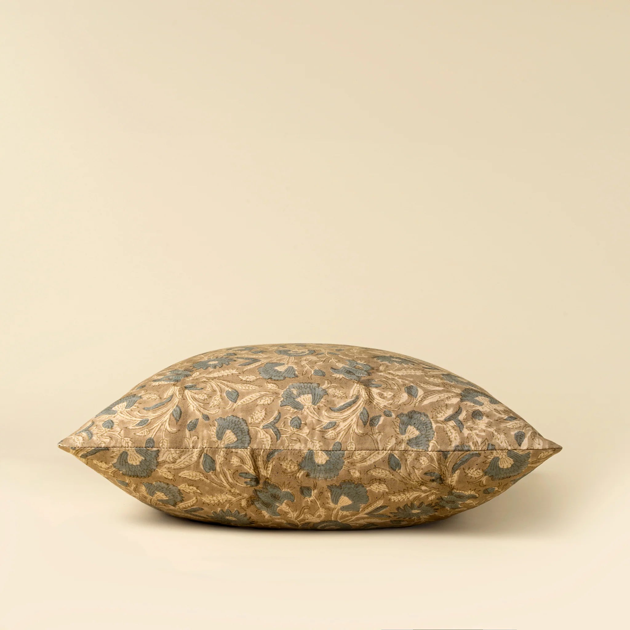 Bring timeless beauty and handcrafted detail to your home with the Shalini Block Print Pillow. Made in India from 100% organic cotton, this accent pillow features a botanical inspired block print in soft blue on a sandy brown base. The subtle contrast and botanical motif add rich visual texture, making it a versatile addition to your decorative toss pillow collection.