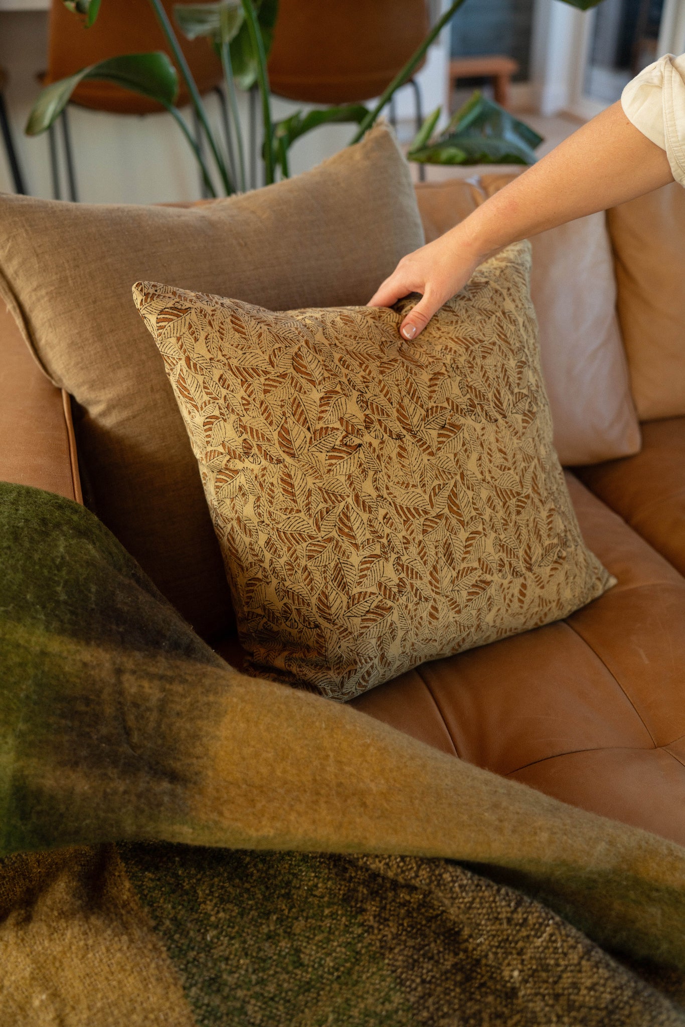 The Tanvi Block Print Pillow introduces a modern twist on traditional handcraft to your home. This unique piece is crafted through block printing, a traditional process perfected by artisans over generations, each layer of colour applied separately with a hand carved wooden block. While modern processes offer speed and consistency, hand-printed items possess a charm and organic feel that mass production cannot replicate.