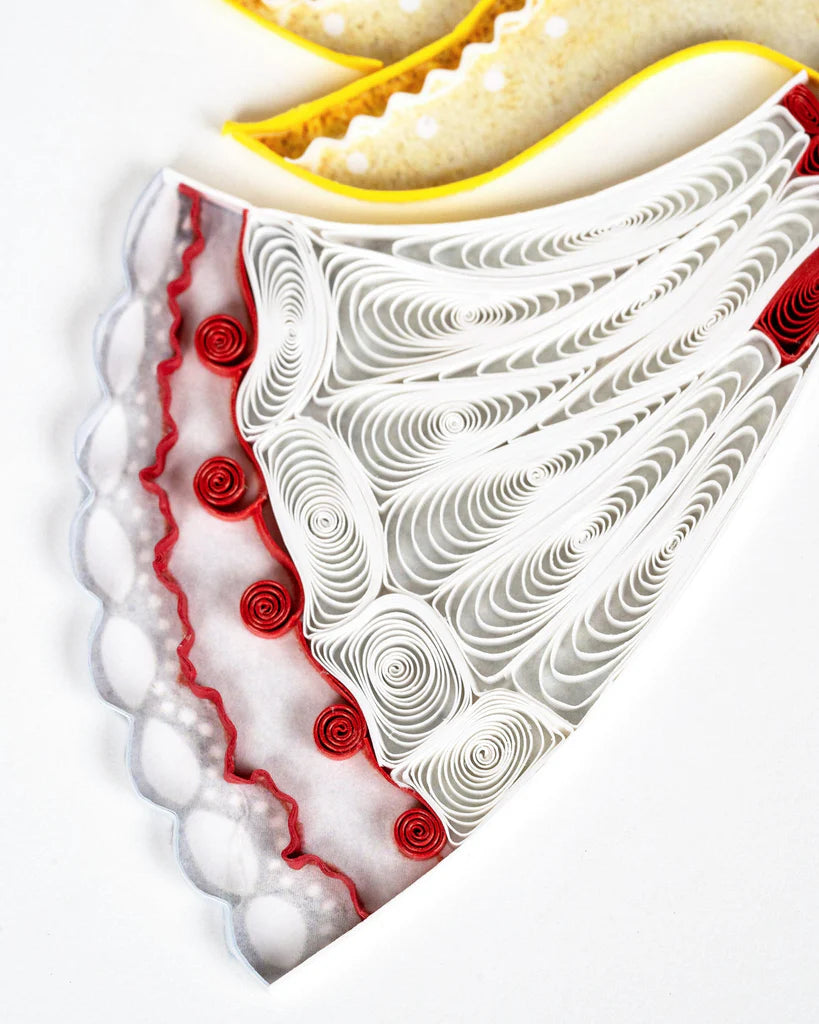 Each quilled card is beautifully handmade by a highly skilled artisan and takes one hour to create. A quilled card is meant for you to share, treasure as a keepsake, or display as the work of art it is.