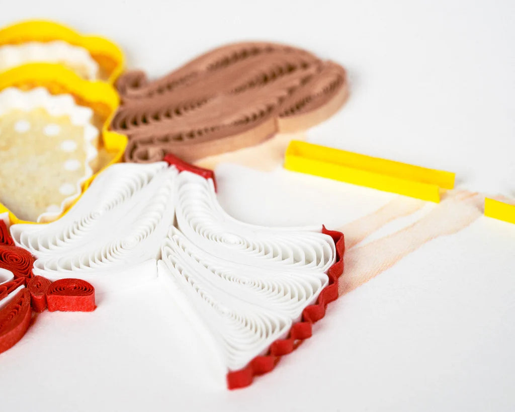 Hark the quilled herald angels sing! Enjoy this handcrafted Angel as she shares the good news of the savior's birth.