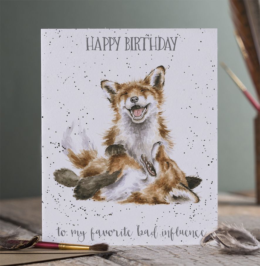 Send someone your birthday wishes with this lovely fox card which reads 'Happy Birthday to my favorite bad influence' The card is printed on high quality, sustainably sourced textured board. It measures 6.77 x 4.84 inches and is supplied wrapped with a recycled, kraft envelope. The message inside reads 'it's your day to celebrate - enjoy and have fun!'