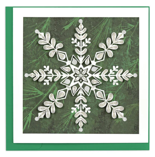 White Snowflake on Pine Quilling Card