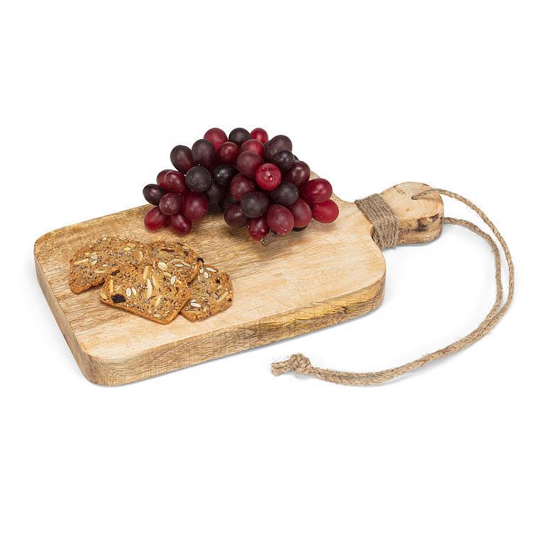 Bring natural beauty and versatility to your home with this Medium Board with Handle & Cord. Handcrafted from sustainable mangowood, this tray features raised edges and smooth finish. Perfect for serving drinks, organizing essentials, or displaying decorative accents. The rounded edges provide an elegant yet rustic look, perfect for serving and food preparation.