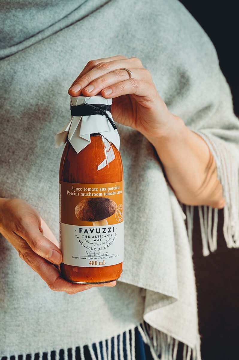 A tomato sauce with porcini is good and comforting! Let's take advantage of the wonderful gifts that Italian woods offer us by bringing back to our palate classic flavors and old traditions, such as good tagliatelle pasta or involtini (meat rolls) served with a tasty Favuzzi porcini mushroom sauce! It is cooked over a flame and has a rich texture with pieces of porcinis. The De Laurentiis family from Abruzzo prepares this sauce with the best local ingredients.