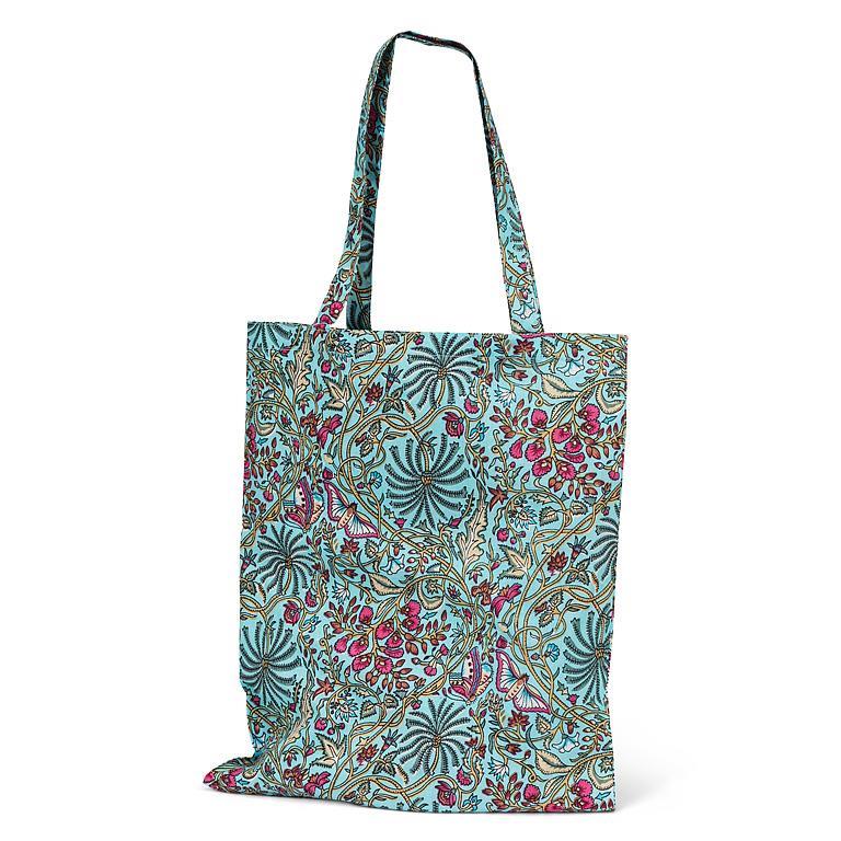 This charming printed cotton tote is perfect for your everyday needs. Lightweight and eco-friendly, it features a delightful printed design that adds a splash of colour to your daily shopping. Makes a great alternative to gift wrapping. Its compact size makes it ideal for carrying essentials like shoes, books, snacks, or small treasures. Additional prints and colours available.