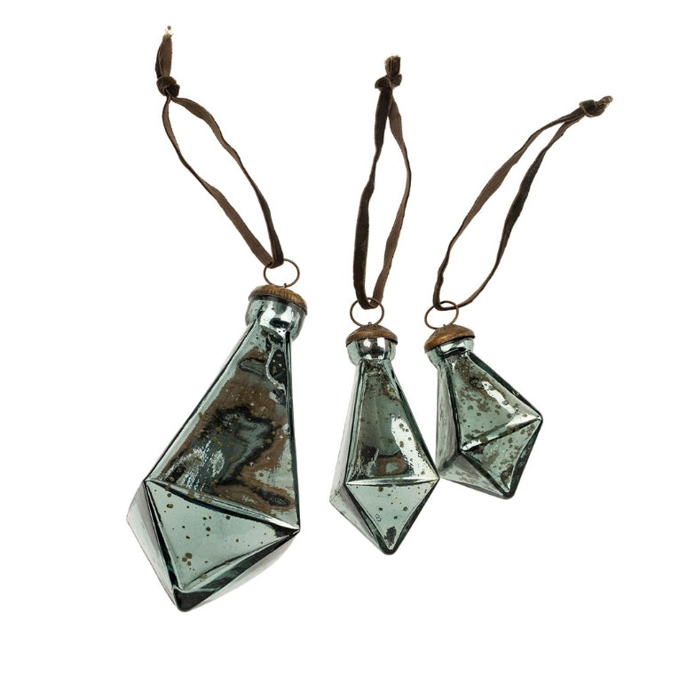Materials & Composition: Made from recycled glass in a faceted diamond shape with a deep teal finish, complete with a velvet loop for a soft, elegant touch and easy hanging.